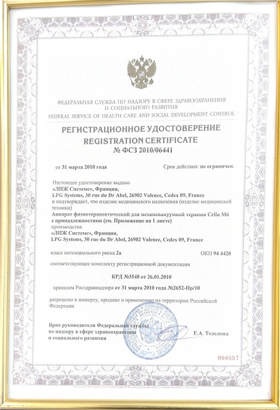 Здесь вы сможете пройти курс LPG, или вакуумно-роликового массажа - это высокоэффективная процедура, которая полезна во многих отношениях и которой специалисты единодушно приписывают не только очевидный эстетический, но и терапевтический эффект. В результате проведения LPG из кожи выводится лишняя жидкость, она получает питание и уход, уменьшается подкожная жировая прослойка и целлюлит. И хотя антицеллюлитное воздействие процедуры является главной причиной ее растущей популярности, она также оказывает прекрасное общеукрепляющее воздействие на организм и снимает боли в поясничном отделе, поэтому достаточно часто рекомендуется во время восстановления пациентов после травм и даже как часть спортивной тренировки! Пройти курс LPG стоит каждому, у кого нет противопоказаний к этой процедуре - наши специалисты проведут диагностику и разработают программу лечения, которая будет вам максимально полезна.